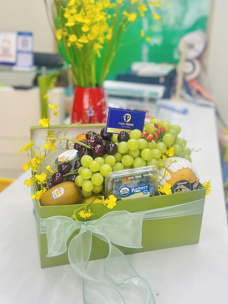 Hộp quà cao cấp sang trọng từ trái cây 100% tươi mới. Phù hợp hầu hết các dịp: Lễ Tết, khai trương, chúc mừng, thăm hỏi. Set 1200k gồm: